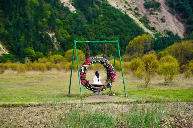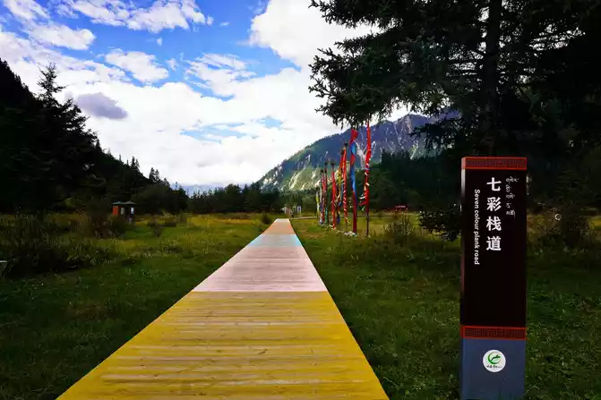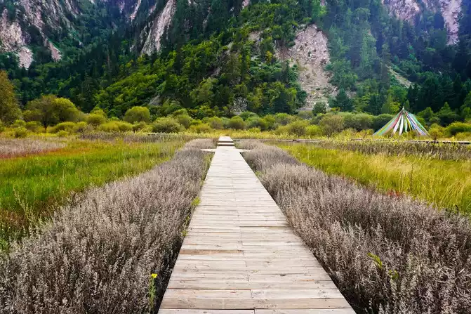Ganhaizi is located in Gonggangling, the junction of Songpan County and Jiuzhaigou County, connecting Jiuzhaigou and Huanglong Scenic Area, forming a scenic corridor with a steady stream of tourists. Nowadays, after repairing and building, Ganhaizi has added an Internet celebrity photo check-in place, a colorful broad avenue like a fairyland, as well as a forest walking area and a bicycle riding area. If you have enough time and good physical strength, you may wish to hike in the primeval forest and enjoy the sea of grass as quiet as a virgin under the "God's perspective" to the top of the mountain, which has a unique flavor and is beautiful.