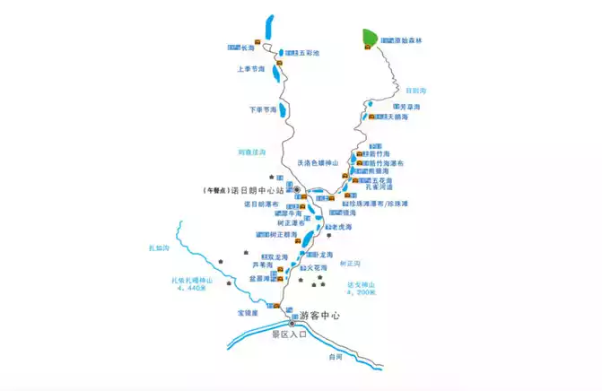 One passes through the Rhino Sea, Zezhawagou, and Wucai Pond to Changhai. the other passes through Norilang Waterfall, Jinghai and Pearl Beach Waterfall to Wuhuahai. In the high-altitude situation, if you want to comfortably visit the beautiful scenery of Jiuzhaigou, you must first take a sightseeing bus to Changhai and visit from top to bottom. Then transfer to a sightseeing bus at the Nuorilang transfer station to visit the Wuhuahai from the bottom up. (Note: There will be no sightseeing bus to Wuhuahai after 15:00, and the tour order can be adjusted according to the actual situation.) )
