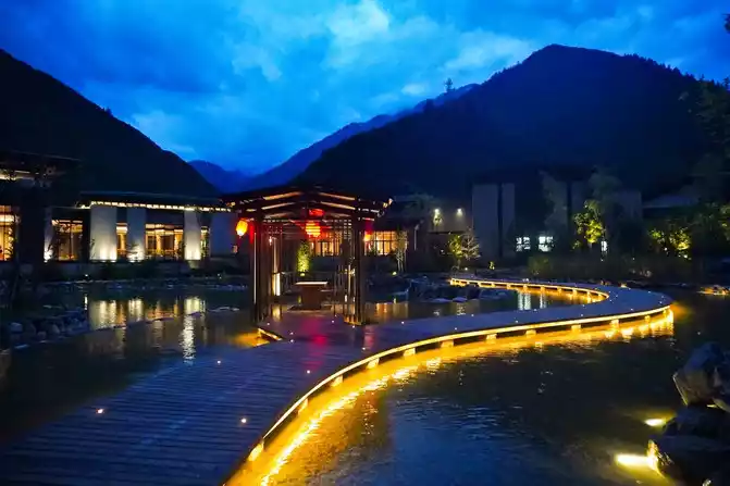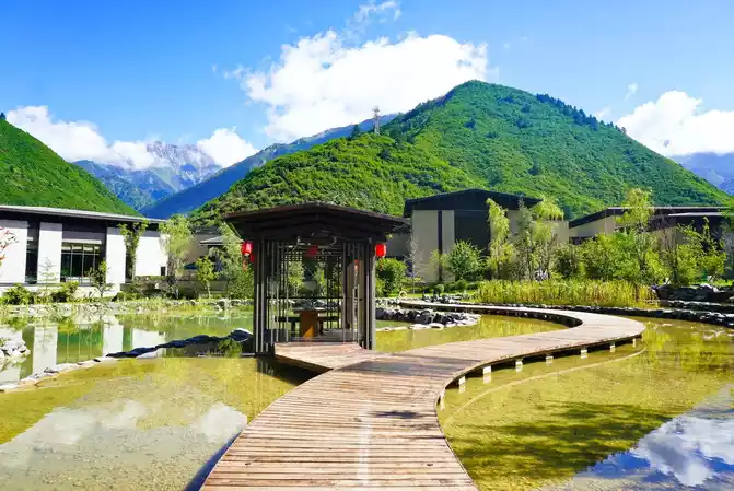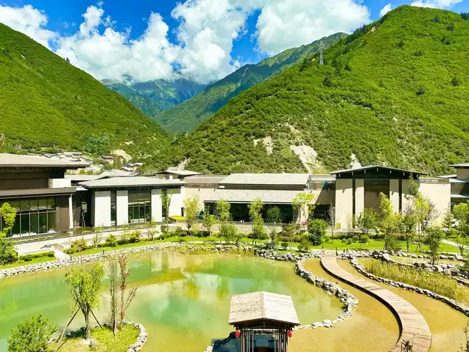 This is not so much a hotel as an "ideal country" in the mountains. It integrates the aesthetics of modern urban architecture and integrates the unique decorations of Tibetan and Qiang people's watchtowers, ancient castles, prayer flags, carpets, etc., to construct a high-end mountain resort hotel that gathers Tibetan and Qiang folk customs.