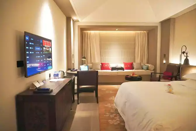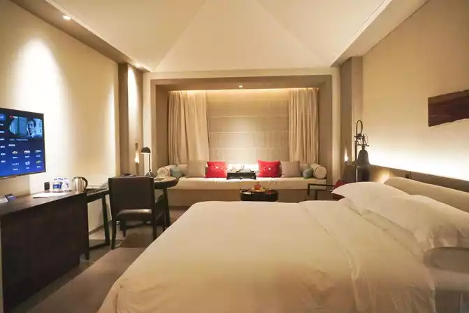Jumping into the soft bed, sleepiness suddenly hit. If you are worried about not being able to get up early, you must use the Bluetooth speaker next to the bedside table. You can enjoy the self-service wake-up call service and fall asleep to the beautiful singing. The "guest room housekeeper" of modern artificial intelligence gives us more ease, convenience and comfort.