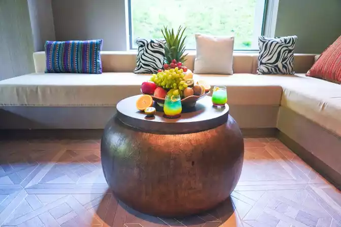 Behind the side of the Qiongniao Lobby Bar, there is a commercial street in the sunroom. The entrance of the commercial street is close to the [Mai] Chinese restaurant and [open] all-day restaurant, and the exit is close to the hotel's garden lakeside. This commercial street is almost empty during the day, and the most lively time is at night, when every store will be open, where you can purchase some Jiuzhai specialties, handicrafts, cultural and creative products, etc. In fact, the commercial street can not only be visited, but also photographed. Because this commercial street in the sunshine room not only moves the shops into the hotel, but also integrates the unique decoration style of the shopping mall into the street. There are ice cream trolleys, mailboxes, wrought iron benches, collector tents, Internet celebrity bird's nests and other photo check-in points, where you can take beautiful photos.