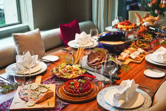 When it's time to eat a meal, this place transforms into a buffet area in the house. The whole buffet integrates Sichuan cuisine, Cantonese cuisine, Western cuisine, seafood sashimi, Tibetan cuisine and other major cuisines, including spicy and fragrant Malatang, tender and delicious foie gras, steak, fatty crabs, fresh shrimp and other seafood, sweet and soft desserts, etc.