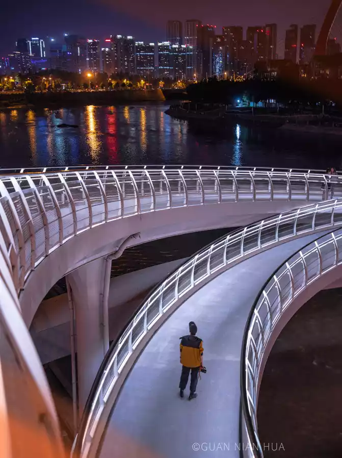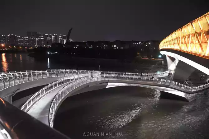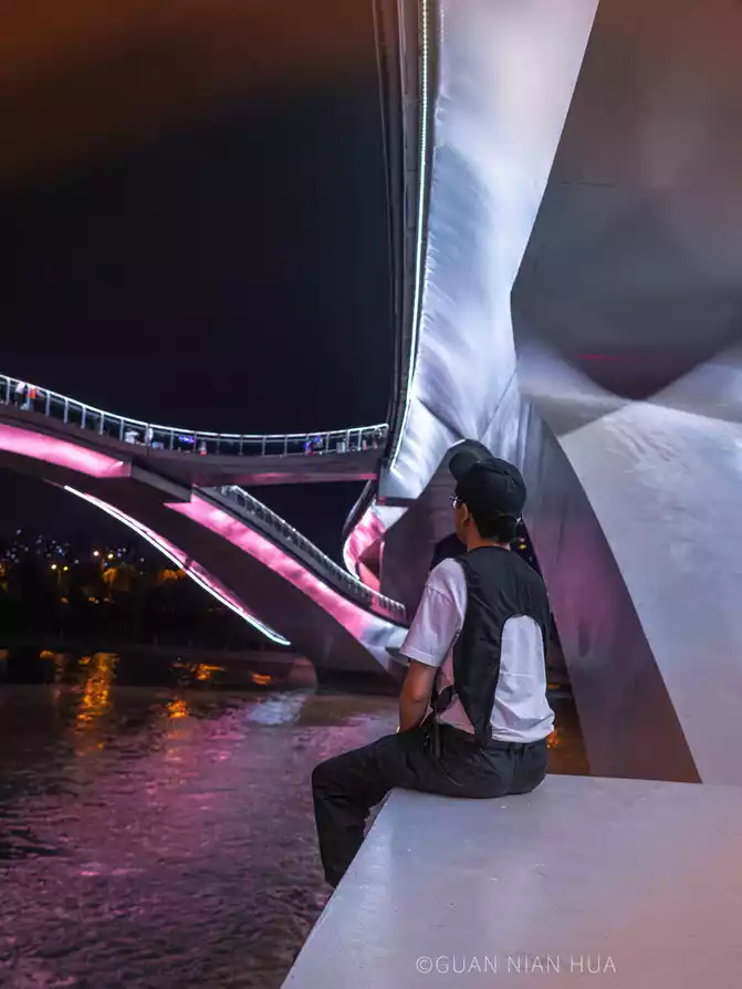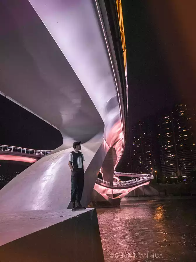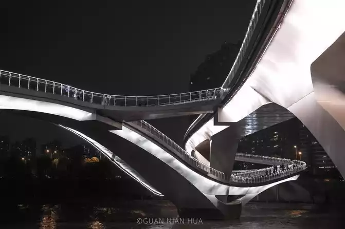Although the name of the bridge seems to be very down-to-earth, after the bridge is lit up at night, the unique lighting design and the "streamlined" beauty of the bridge are instantly presented, full of science fiction futurism. At that time, the designer was inspired by the Mobius ring, which was an infinite symbol ∞ shape if there was a drone overhead shot.