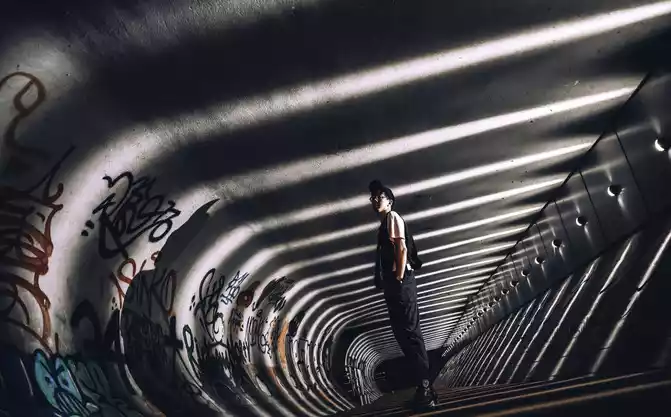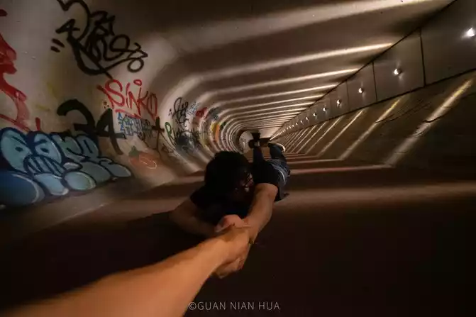 The tunnel is a warm yellow light, everyone pays attention to finding the position of light and shadow, aligning the lens, so that the contours of the face and body are best presented in the lens, and you can shoot a perfect blockbuster.