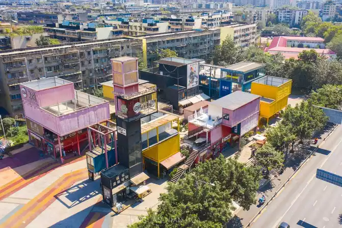 The two places are very close, to be honest, maybe it's been too long, the container has been a little faded, not as spectacular as when it first came out. IBOX was first released in 2014, it was designed by the original team of BOXPARK in London, England, and was a creative base composed of 22 containers.