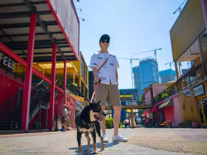 happened to be a pet store in the park, and the owner was walking his dog and couldn't help but play with the dog for a while.