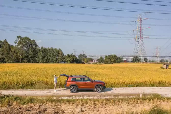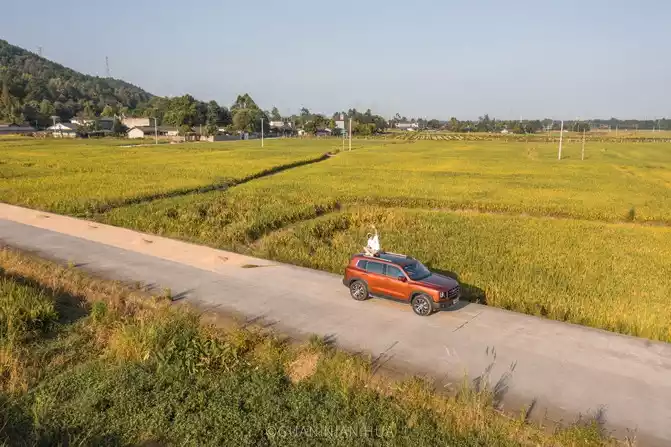 Coming out of the bamboo art village, seeing that it was still early, we decided to drive the big dog to the surroundings. In September, when the rice is ripe, the roadside rice fields are golden, and Jay Chou's "rice fragrance" floats in our minds, and we immediately decided to stop here for a nap.