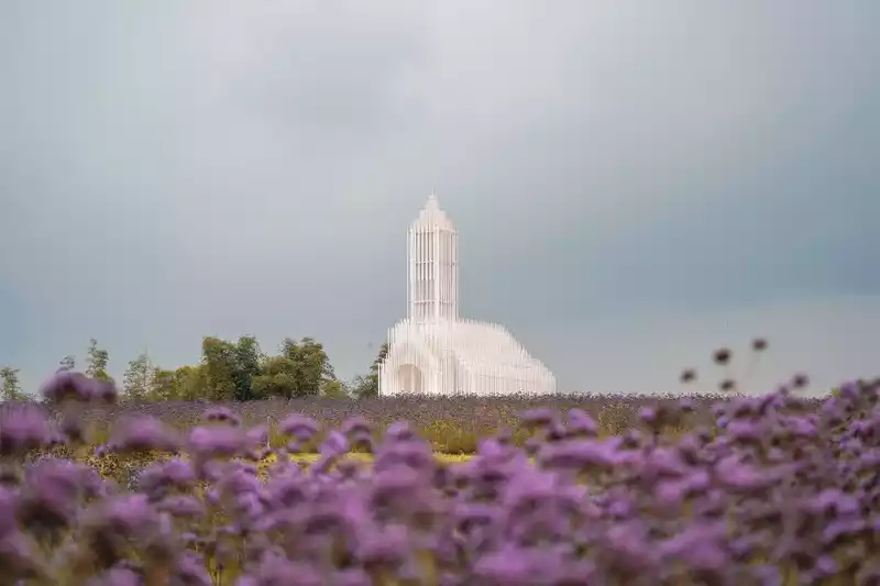 The Shadowless Church is a Gothic architectural style church, enclosed by pure white columns, looming, the sights presented during the day and night are completely different, when the sunlight penetrates the building during the day, it is the church of the gods with its own holy light, and the cross of the church will be brightened at night, and the scenery will be more dreamy.