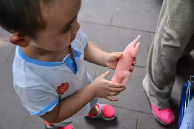 The juvenile giant panda villa is the most popular place, so volunteers are also arranged to do popular science work, and the pink baby in his hand is the model of the giant panda when it was born , the whole body is pink, like the size of a mouse. It is difficult to imagine that such a tiny body can grow up to 300 kg.