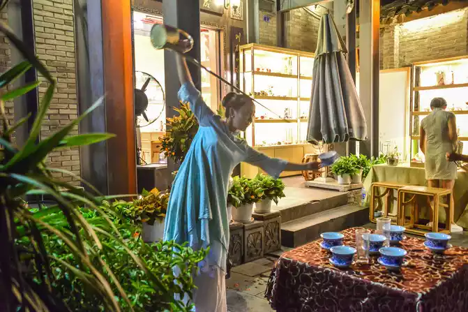 Tired of walking, you can sit on the street and make a cup of kung fu tea, the superb kung fu tea performance is soft and hard, and the hard is soft. All kinds of modeling actions, retract and release freely, like mountains and flowing water, all in one go!