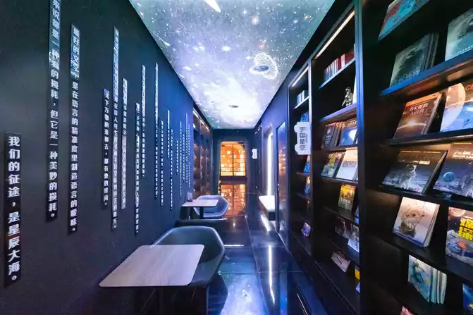 On the second basement floor of Chengdu IFS, the bookshelves are full of books, like a forest, and almost like a castle hidden in it.