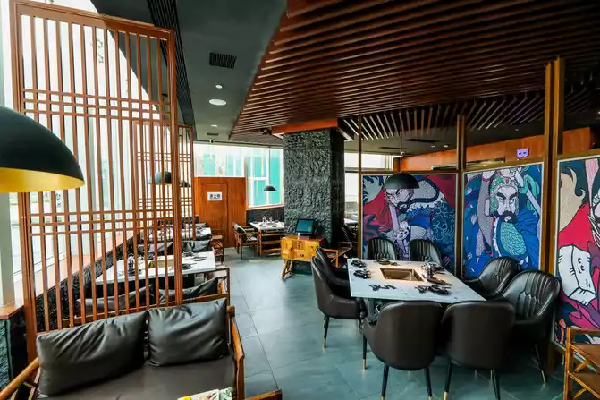 "Help" is located in the sculpture courtyard on the 7th floor of Chengdu IFS, the environment is very elegant, the overall color is dark wood, separated into two areas by screens, one side is simple and bright, and outside the huge floor-to-ceiling windows is a beautiful sculpture courtyard.