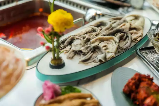 tripe is delivered to the store every morning, maintaining an extremely fresh experience within 8 hours, after serving, the tripe is spread out in large pieces, and the surface is distinct. The burrs stand upright, and the pot is scalded for fifteen seconds, and the entrance is a capital crisp.