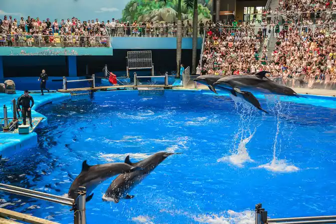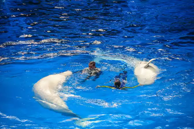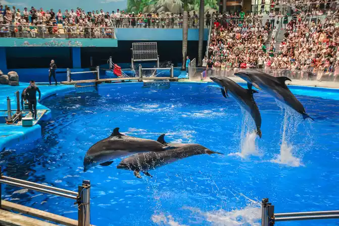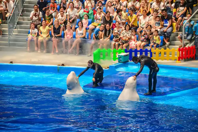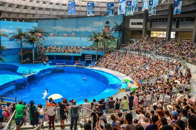 into the park, The first place to focus on is the whale and dolphin performance venue, where the dolphin show is the most worthwhile project, and if you miss it, you will definitely find the boss to refund