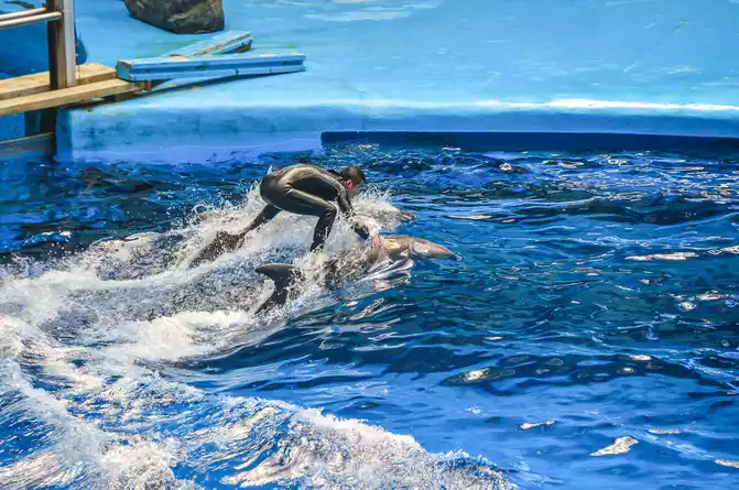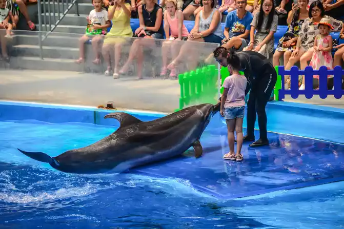 At the end of the show, lucky children will be invited to come up and interact with dolphins, if I hadn't looked older, I would have wanted to raise my hand