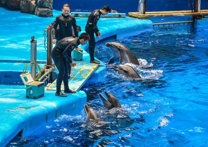 whale and dolphin performance: 11:00, 13:00, 15:00, 17:10