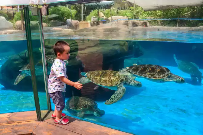 After watching the show and playing in the water, we went to another part of the Ocean Park, the Tropical Ocean Zone, and the first old friend we met was Mr. Turtle