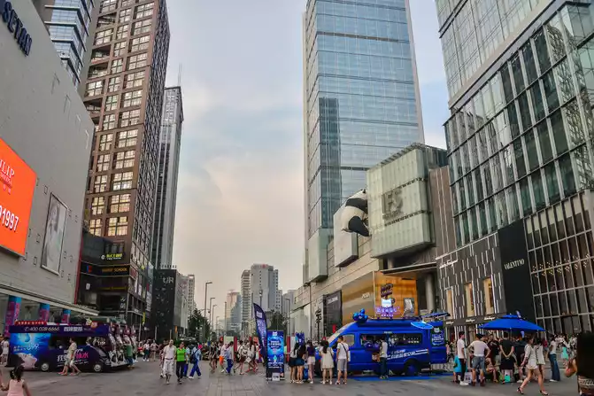 Cross-storey flagship stores of many international brands stand next to each other along Hongxing Road, forming a spectacular 530-meter-long "International Famous Store Street", International luxury brands gather together, comparable to the prosperous scenery of Guangdong Road Harbor City, becoming the most dazzling scenery of Chunxi Road.