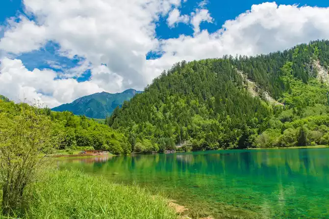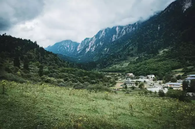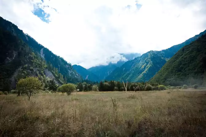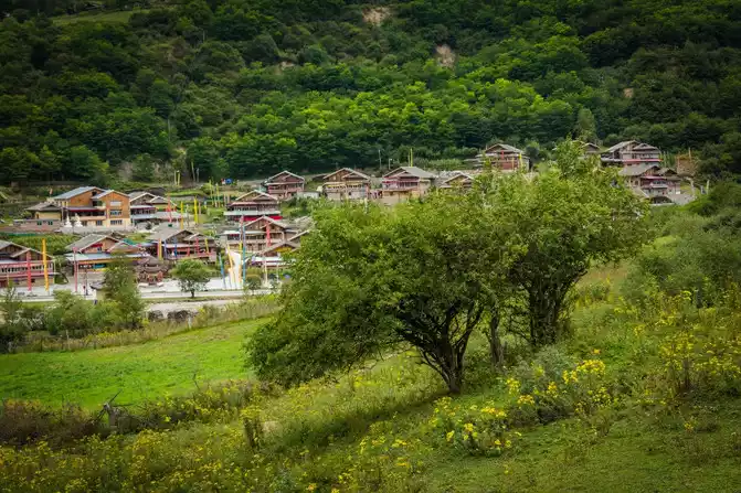 It is separated from Jiuzhaigou by only a mountain, surrounded by green mountains all year round, and cattle and sheep are scattered on the hillside, creating an idyllic scene.
