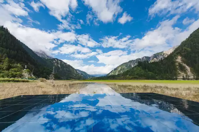 My personal favorite is a mirror of the sky here, when a person stands on the glass, the reflection is connected to the sky, and a blockbuster can be shot in minutes.