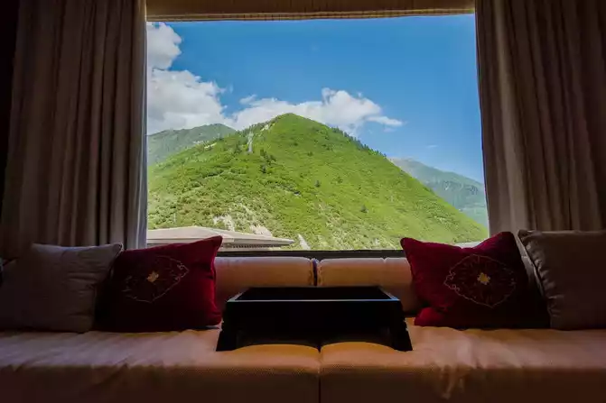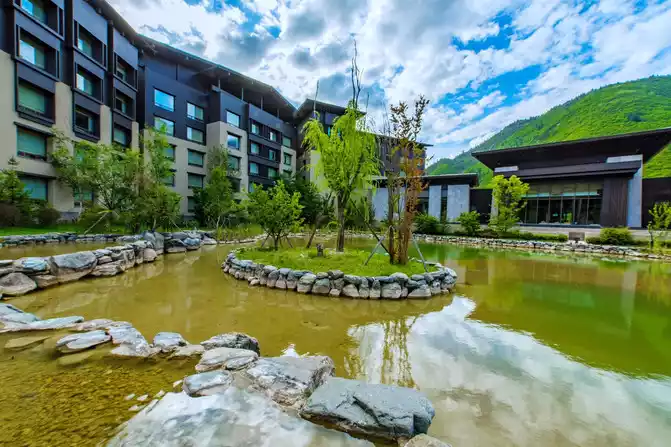 This hotel is located on the lush hillside of Minshan Mountain, backed by the peaceful and peaceful Zhongcha Village, quiet and long, independent. It is the first mountain resort hotel laid out by Hilton in Sichuan Worldwide. It is 75 km from Jiuzhai Huanglong Airport and a 1.5-hour drive away. It is only 12 kilometers away from Jiuzhaigou National Nature Reserve, about 15 minutes by car.