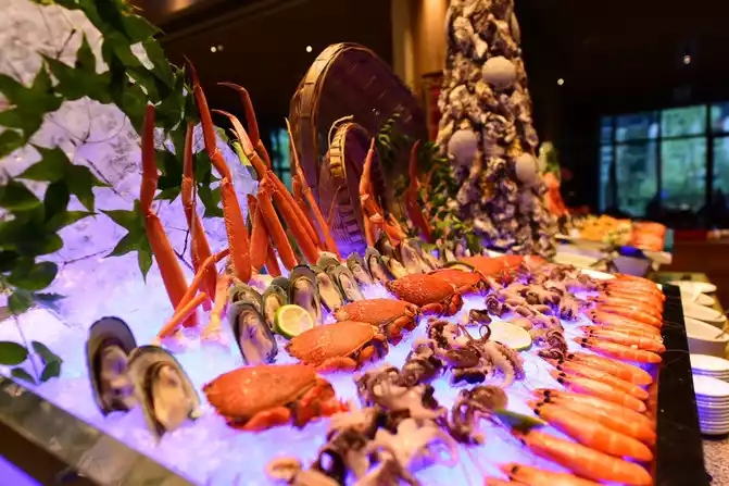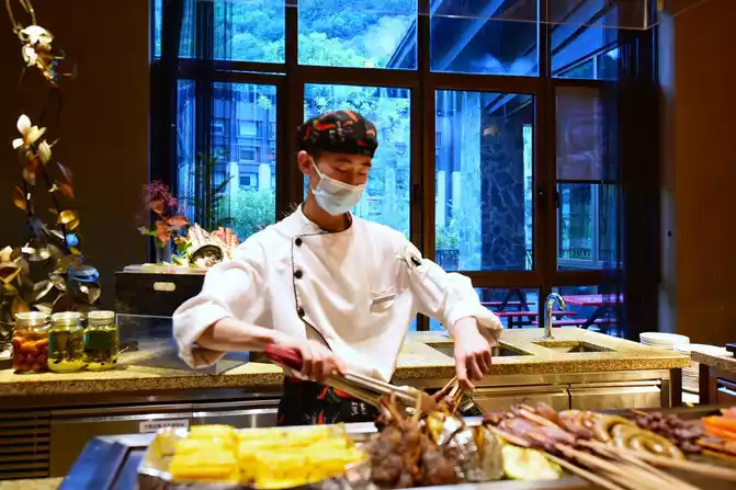 After resting and reserving, we chose to dine at the all-day dining restaurant in Jiuzhai, which is transparent and bright, with a choice of indoor and outdoor spaces, excellent water views, and an impressive open kitchen. A wide variety of cuisines, including a la carte and breakfast buffet, are available to whet your appetite. Opening hours: 6:30 a.m. - 10:00 p.m