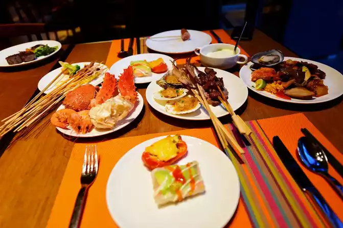 .The price of the buffet dinner here is 258 yuan per person, all kinds of seafood, barbecue and other local specialties, on the plateau, it is really rare to have this specification, even Sichuan's bowl chicken, Maocai can be eaten... In addition to the buffet dishes, there will also be some limited edition dishes for guests to choose from every day, and we had foie gras and avocado rolls that night.