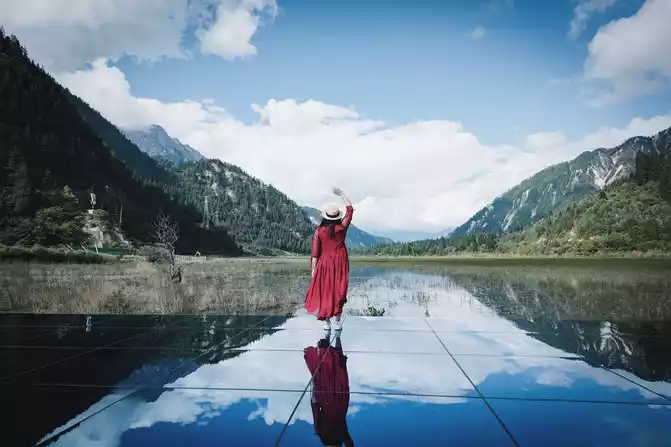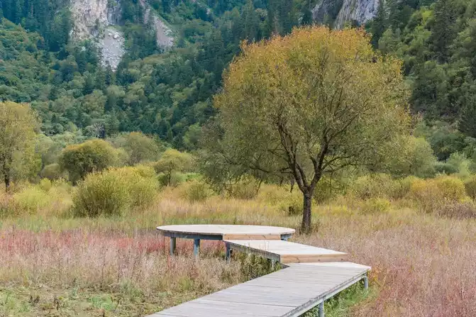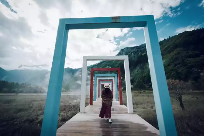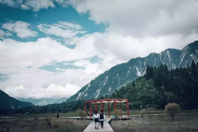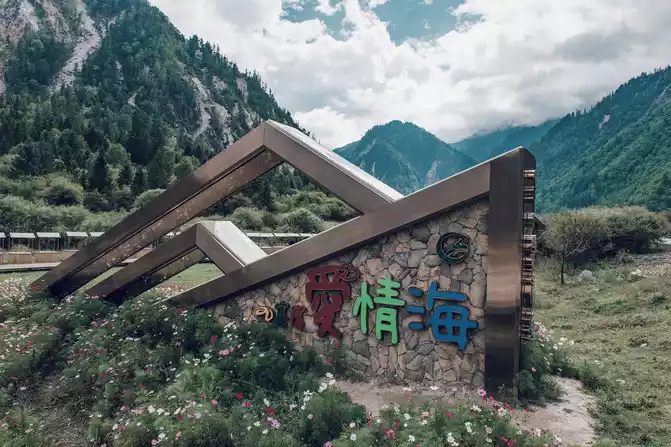 It is a love garden carefully created by the Jiuzhaigou Administration, so it is also called the sea of love. There are many Internet celebrity check-in points suitable for taking pictures, including the popular love arch, the Eternal Tower of Folk Customs, the Happiness Prayer Bucket, the marriage flag, the colorful plank road, Lanshanwu, and the flying wings.