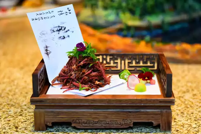 When I returned to the hotel from Gan Haizi, my stomach was already hungry. I heard that Hilton happened to hold the first "Chinese Chef Season" this month, and as a foodie, I naturally won't miss this opportunity to taste delicious food. I made a reservation with my friends at Mai Chinese Restaurant and ate the dishes carefully cooked by Master Liu Yang, who has been in the industry for more than 20 years, especially the "highland barley pan-fried yak steak", which also won the honor of the top ten dishes of the "Panda Jiuzhai" food festival.