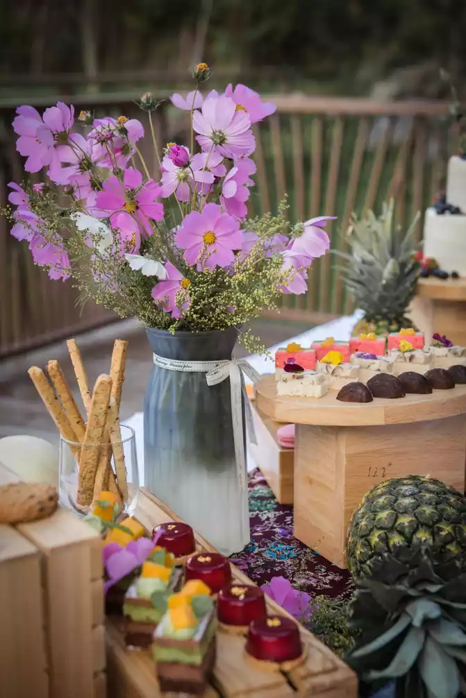 It is said that some of the fruits on the table are freshly picked directly in the hotel's orchard, and those Gesang flowers also represent sincere wishes.