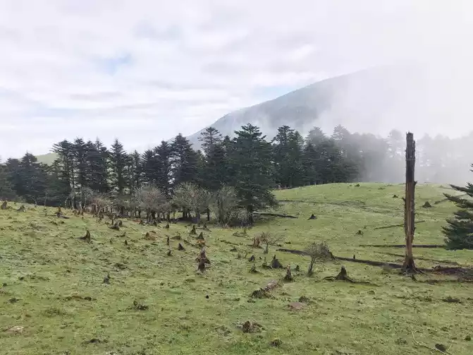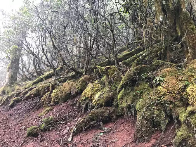 We set off at 7 a.m. the next morning, and the guide was a Yi man in his 70s, named Jikebuha, and his body was quite strong. There are 3 roads to dig Heiluohuo, the first is from the 4th group of Lewu Village, the second is from Ganzikou Village, and the third is from the rhododendron pond in Haqu Township, we chose the first one, about 5 hours to walk, and you can live in the simple houses of the locals or bring your own tent after going up. Find a local guide for about 200 yuan a day.