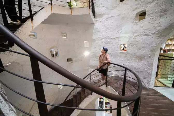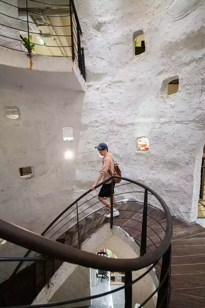 concept of geometric bookstore originated in Xining, Qinghai Province, and is divided into blockbuster reading, snowy pure land, sky city, time library, space door and regain life. However, geometric bookstores also have different styles in different cities, this time I went to the Mengchai Bay store not far from Chunxi Road, its most attractive point is a spiral staircase inside, a full three floors, also known as the "nine-story demon tower".