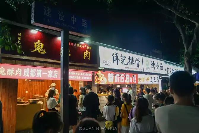 来 成都 前,朋友就一直给我安利这条网红美食街,据说还是一代年轻人的读书时代回忆。 At that time, because of the existence of the Shahe Campus of the University of Electronic Science and Technology, this snack street became larger and larger, and now it can be regarded as the second canteen of the University of Electronic Science and Technology.In addition to students, more and more outsiders are gradually choosing to come here to check in.