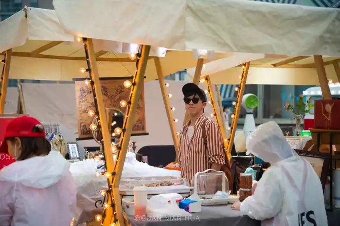 This time in the sculpture courtyard, just in time for the "Qiutian New City" night theme market, there are not only creative handicrafts, snacks and snacks, camping tents, but also co-branded hot pot bases, and immediately bought two packs to take home.