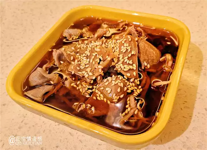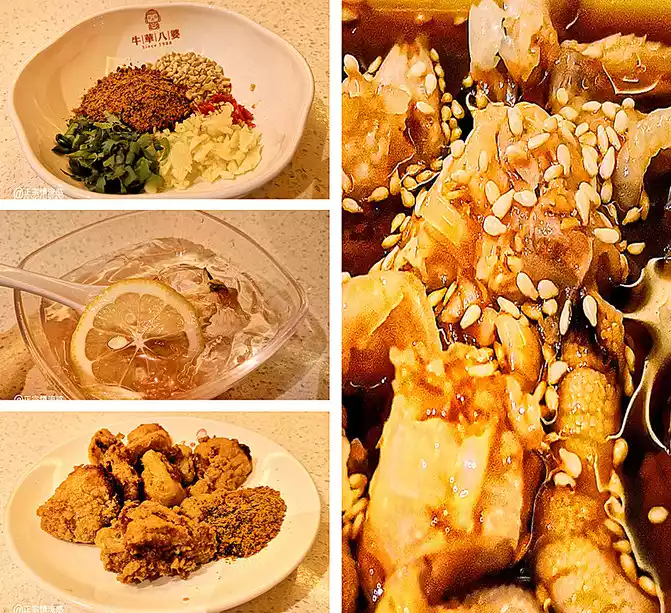 The seasoning plate is prepared for diners, just pour customized sesame oil (guests can also DIY seasoning). It is recommended that the red oil chicken foot bowl and the county liver bowl are crispy bean sprouts as the base, cut into small chicken feet and county liver juice water flavor, drizzled with red oil, slightly spicy and crispy, a good cold snack.