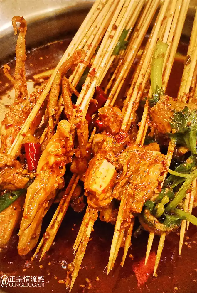 hot pot skewers: many varieties, fresh, thin signatures, no water. Strongly recommend secret beef, wild pepper beef, duck tongue, treasure in the palm of your hand, full of color and flavor, classic without stepping on thunder. In addition, the hot duck intestines can be served on a plate, crispy and refreshing, and delicious enough to have another plate.