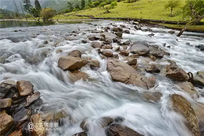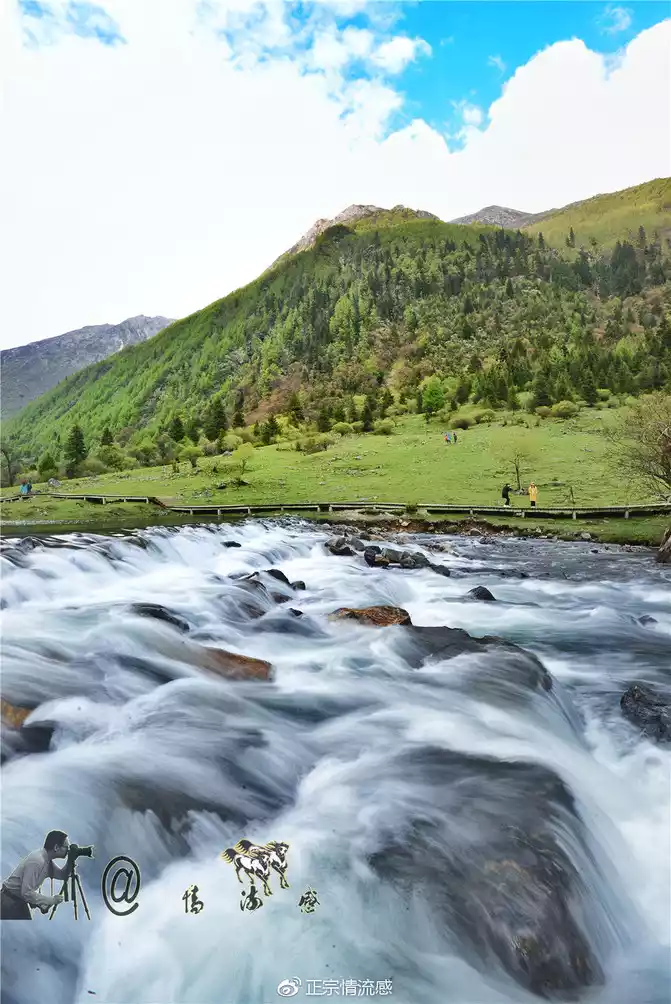 The sky is blue and the clouds are white, the peaks are competing, the water is weaving, the clouds are shrouded in mist, and the grass and trees are intertwined, which makes people intoxicated by the ......