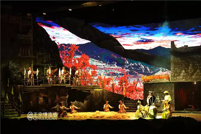 after dinner, We had the honor to experience the country's largest three-dimensional indoor live-action song and dance drama that is about to be officially performed at the Xiaojin Rongzhong Erjia Performing Arts Center, and the performance was the work "Sgura" directed by Rong Zhong Erjia himself.