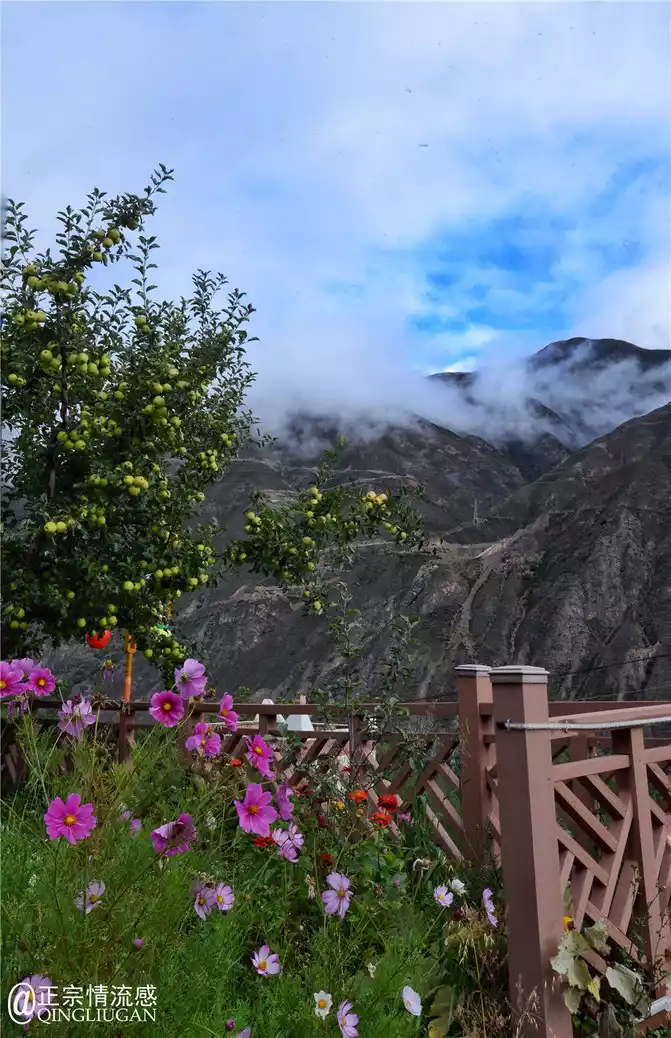 When you get up in the morning, the trees outside the window are full of apples, the Gesang flowers are blooming in the yard, and the mountains are floating with clouds and mist under the blue sky.