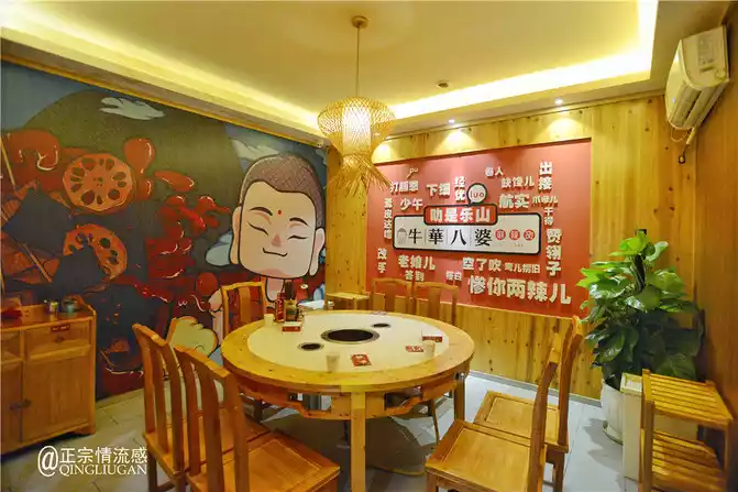 This Niuhua Bapo Malatang is a Chunxi Road store, the whole store hall is spacious and bright, the red tone is the mainstay, and there are private rooms to gather. There are also many dialects (dialects) from Leshan, Sichuan and other places on the wall, which are distinctive.