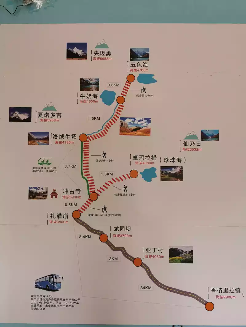 Transportation: Buses in the scenic area, can be unlimited times. Sit to the end, walk up a little more, buy a ticket to the Luorong Cattle Farm, the fare is 80 yuan, here is 4180 meters above sea level, my mobile phone has no network signal, there is no way to scan and pay, the ticket office actually has no change to find, fortunately I have 80 yuan in cash, go down to Aden Village, my mobile phone will return to normal.
