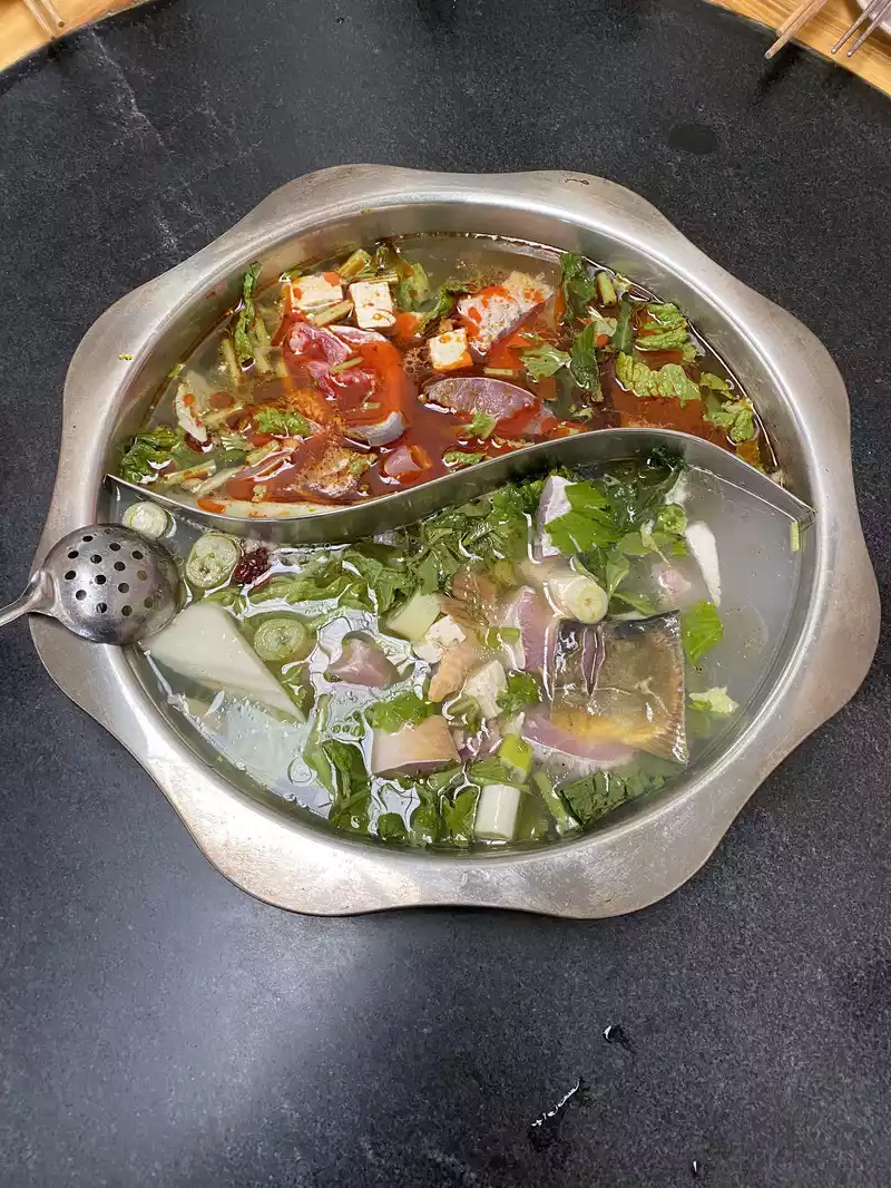 At noon, we were arranged to eat alpine snow fish hot pot, because there were basically no restaurants along the way, the business was very prosperous, and the vegetables produced on the plateau were not as glutinous and sweet as the vegetables on our side, but they could not be wasted, and I praised the quality of the members of our group.
