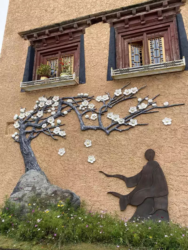 Today started the return journey, the first stop came to Kangba Tibetan Village, the village provided a special [Tibetan chicken banquet] lunch for free, and asked the passing tourist bus to stop here, a Zhuo mother received us (Tibetan women have not read much, her brother is a living Buddha who strongly advocates that her parents send her to school, and now it is just right to use it to receive tourists) introduced the customs and customs of the Tibetan people and Tibetan medicine and Tibetan medicine , Tibetan silver, introducing the way of health preservation of Tibetans. Promote the skilled silver products made by their special craftsmanship. Spending 1080 to buy a small silver comb is a bit expensive, so let's leave a souvenir.