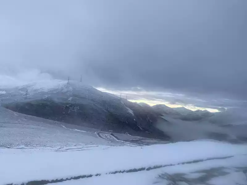 Thehard work of the group is that the time must follow the arrangement, and at six o'clock in the morning, we hurriedly ate some porridge steamed buns and eggs and set off on the trip. After passing the eighteen bends of the heavenly road, we crossed two mountains: [Scissor Bend Mountain] at an altitude of 4,659 meters and [Kazila Mountain] at an altitude of 4,718 meters.
