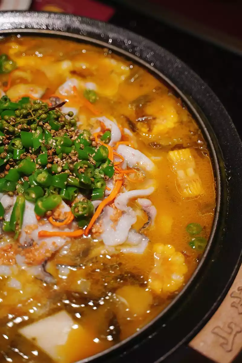 It is particularly difficult to recommend what to eat in Chengdu, after all, there are too many choices, not to mention that it is difficult to adjust, and hot pot may get completely different evaluations just by one level of spiciness. So I have a few mantras: if you are not a friend from other places who often eat spicy food, it is enough to make the hot pot slightly spicy, and the skewers are not too spicy overall; Sichuan cuisine is not only a few dishes such as sweet and sour pork, mapo tofu, and spicy chicken, you must try it boldly. Take sour, vegetable and fish - Laotan sauerkraut fish outside the mountain city as an example.