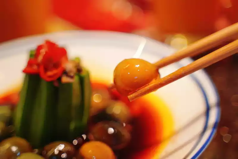 Chopped pepper preserved eggs, chewy preserved eggs and fresh and refreshing okra soaked in red oil, the color is bright, and you will have a great appetite when you look at it.