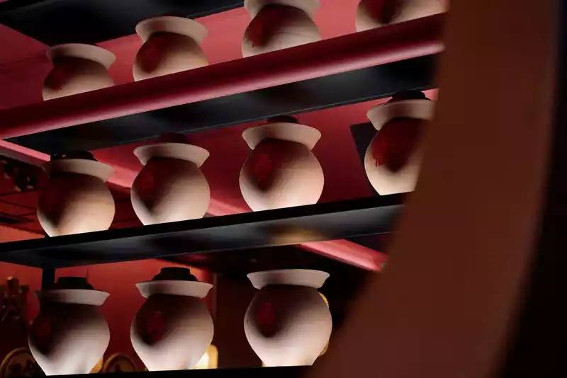 are still many small details in the store, looking at the rows of jars, they are all filled with their secret sauerkraut. The more you look at this scene, the more familiar it becomes, by the way, isn't this the advertising screen of a certain Laotan sauerkraut noodles, but the sauerkraut flavor is much stronger than that! The hanging bamboo lanterns have a strong Chinese style~