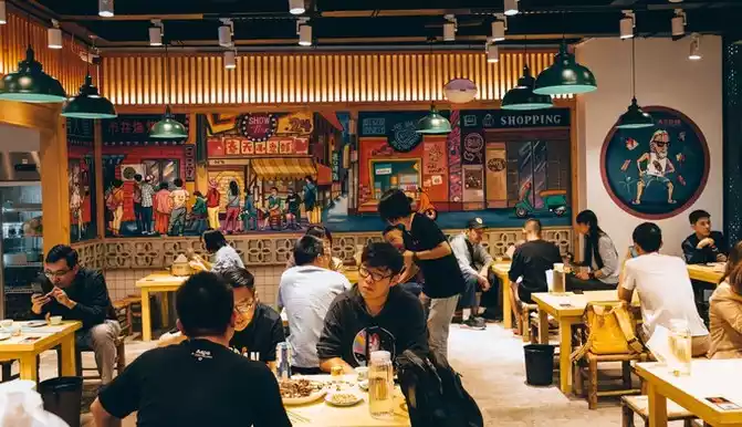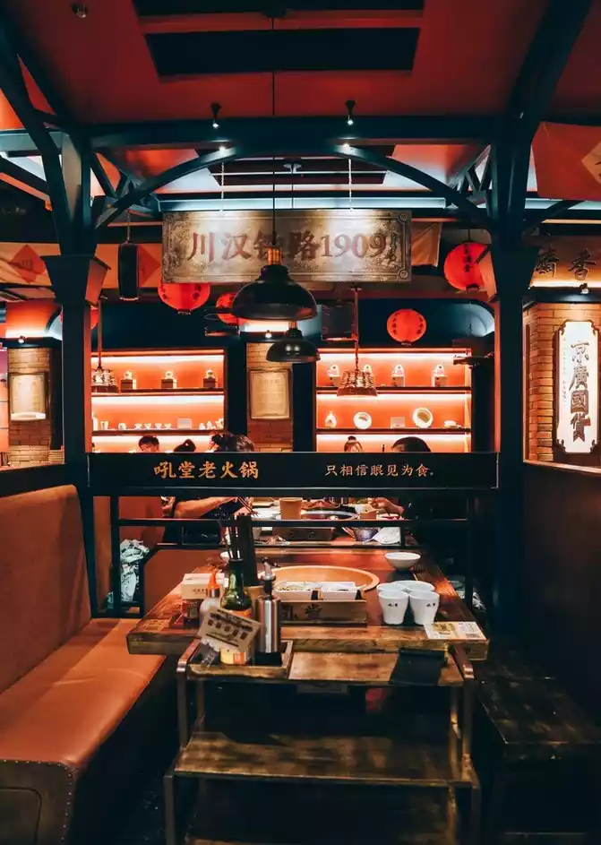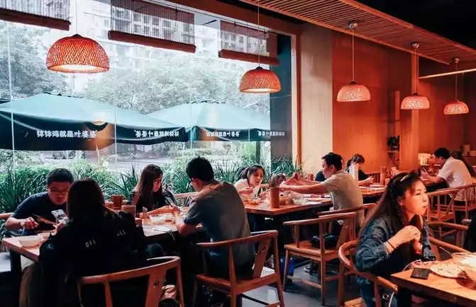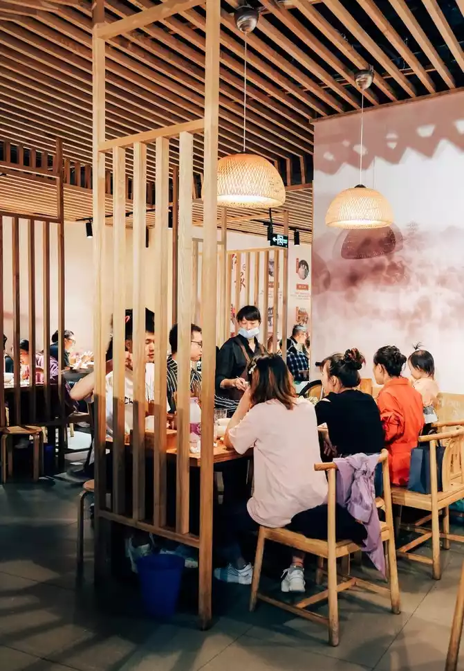 The lights are yellow and orange, with the overall design elements, which is very warm and can greatly promote people's appetite.