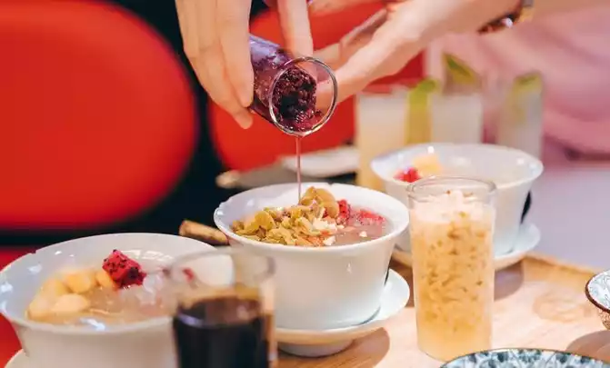 Fresh milk coconut-flavored sago dew, sweet but not greasy, is the most suitable for pairing with bowl chicken.