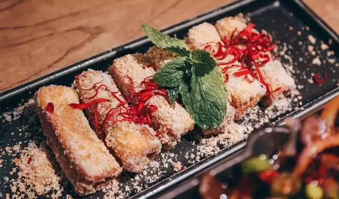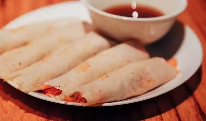At first, we thought it was a spring roll, but after taking a bite, we found that it was a completely different taste, and it was surprisingly delicious with the dipping sauce.